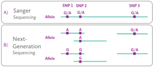 Sanger and NGS show important differences in how and how well the ambiguities can be resolved. Figure 1 illustrates how different sequencing approaches impact ambiguity resolution.