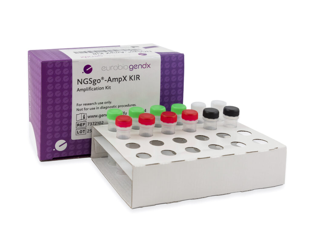 NGSgo®-AmpX KIR goes beyond presence/absence typing as it allows for genotyping at the allele level by NGS. NGSgo-AmpX KIR provides reagents for whole-gene amplification of 8 different KIR genes, available as single genes or as a complete kit with all 8 genes together. The combination kit includes GenDx-LongMix enzyme. NGSgo-AmpX KIR is compatible with NGSgo library preparation for Illumina and analysis in NGSengine. Available as RUO.